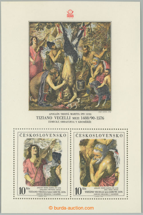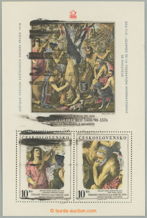 Philately. Pof.A2334/5B production flaw, miniature sheet PRAGA 1978 with inscriptions, production flaw - significant stains (ster) black color in/at complete area miniature sheet; unusual and very interesting! (Image) (Image2)