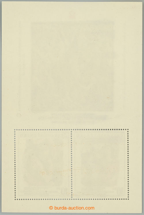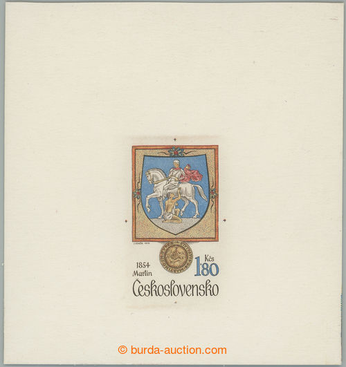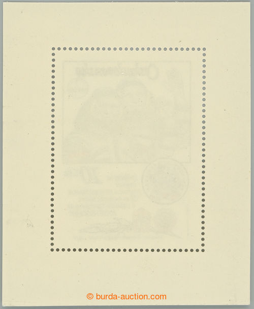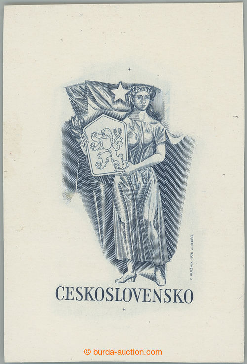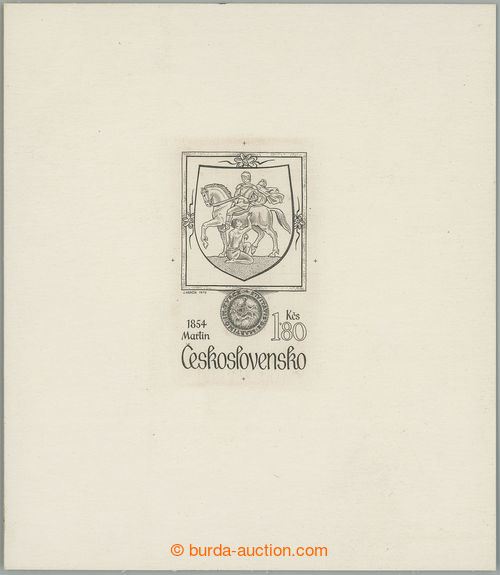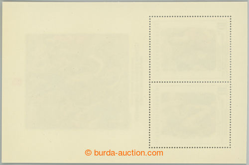 Philately. PLATE PROOF Pof.2381, Fauna in/at heraldice 1,80Kcs, master die in black color on chalky paper without gum, in/at miniature sheet arrangement with very wide margin; very fine (Image) (Image2)