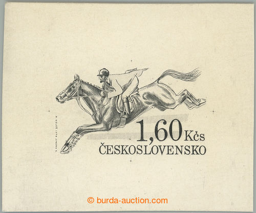 Philately. PLATE PROOF Pof.2344, Racing 1,60Kcs, master die in black color on/for white carton without gum with wide margin; without defects
