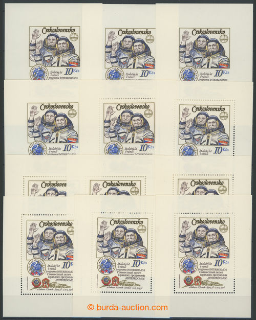 Philately. Pof.A2364A+B, miniature sheet Intercosmos, complete set 8 MS pos. perf and 4 MS pos. imperforated miniature sheets, incl. II. types; mint never hinged (Image)