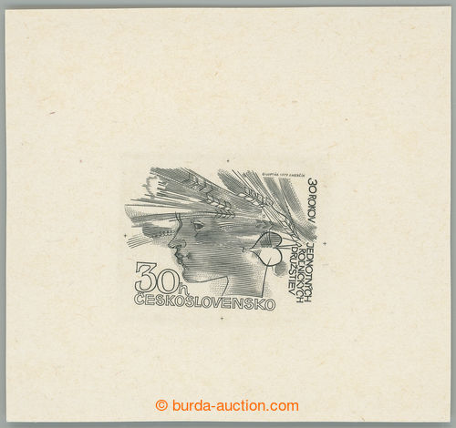 Philately. PLATE PROOF Pof.2358, Anniv JZD 30h, plate proof gravure in black color, on/for chalky carton greater size; without defects