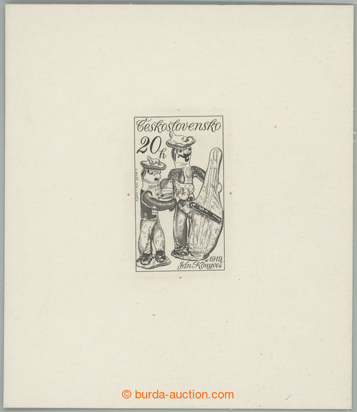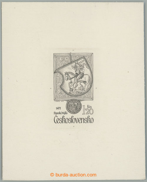 Philately. PLATE PROOF Pof.2380, Fauna in/at heraldice 1,20Kcs, proof master die in black color, on chalky paper with very wide margin; without defects (Image) (Image2)