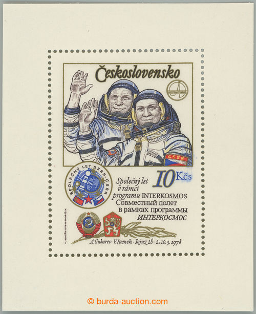 Philately. Pof.A2364A production flaw, miniature sheet Intercosmos 10 Koruna, production flaw - significant blue lines through/over Koruna; mint never hinged (Image) (Image2)