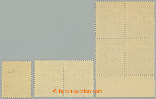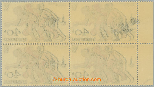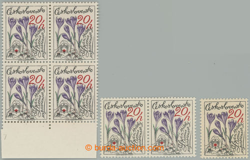 Philately. Pof.2366 production flaw, Mountain Rescue Service 20h, selection of marginal block of four with shift red color downward (to to flower and inscription), red cross from larger part outside vymezenou face + horizontal pair