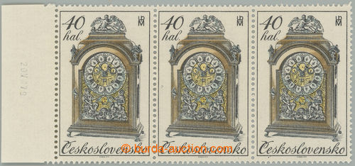 Philately. Pof.2400 RE, Historical Clocks 40h, str-of-3 with date 20.VIII.79 (last day print) with retouch defects on/for 2/7, place black little lines group thin/light dots (retouch only this day, will be zarazeno in catalogue),