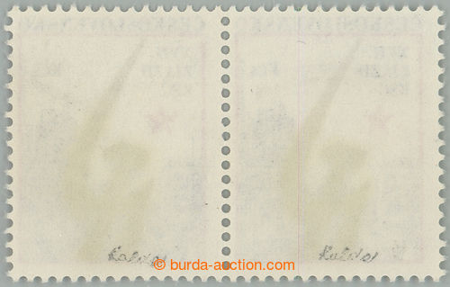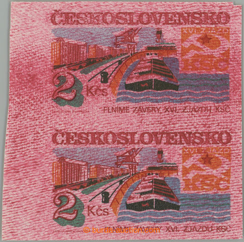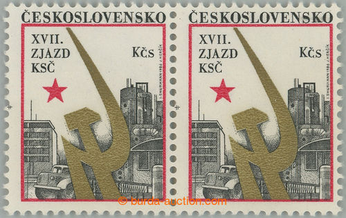 Philately. Pof.2737 production flaw, XVII. Congress of Communists 1Kcs, horizontal pair, production flaw - missing print blue color, without numeral value 1; without gum, exp. Kulda (Image) (Image2)