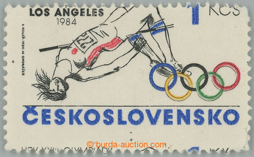 Philately. Pof.2663N, Olympic Games Los Angeles 1Kcs, for political reasons UNISSUED stamp. with inscription Hry XXIII. Olympics/ Los Angeles/ 1984, in addition significant shift horiz. perf downward to picture of stmp.; all piece