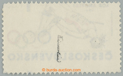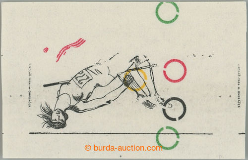 Philately. PLATE PROOF Pof.2663, Sport 1CZK, plate proof stamp. with changed picture without inscription Los Angeles + significant shifted print color olympic kruhu, without perf, print on stamp paper with gum; mint never hinged,