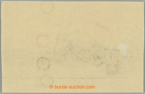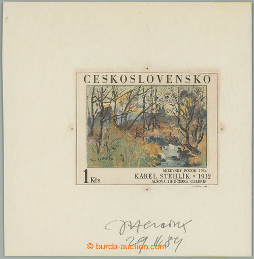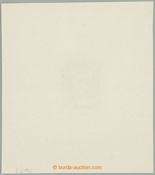 Philately. PLATE PROOF Pof.1798, Stehlik 1Kcs, plate proof nedohotovene gravure (neproryty wedge [ ˇ ] above C) in/at definitive colour joined printing on/for chalky carton without gum, wide margins, signed Hercik; very fine (Image) (Image2)