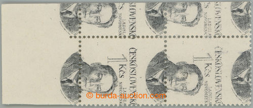 Philately. Pof.2644 production flaw, Heroes of Resistance - Novomesky 1Kcs, vertical pair with L and bottom margin, najezdova maculature, print only black color, significant shifts perf, on stamp paper with gum; mint never hinged (Image) (Image2)