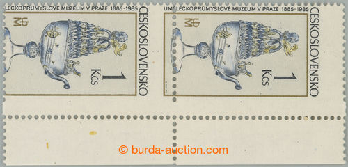 Philately. Pof.2720 production flaw, Art Handicraft 1 Koruna, vertical pair with R margin with production flaw - significant shifted perforation up and transport + digression perforation comb; mint never hinged, rare and
