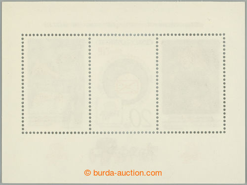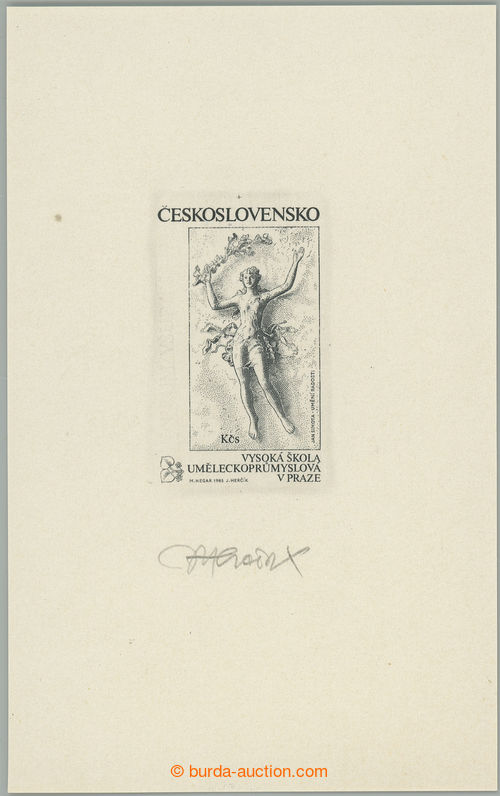Philately. PLATE PROOF Pof.2683, 100 years VS umelecko-prumyslove in Prague 3Kcs, proof master die in black color, on/for white chalky paper with very wide margin, signed J. Hercik; without defects (Image) (Image2)