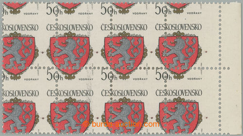 Philately. Pof.2734, Vodnany 50h, R marginal block of 8 with significant shifted perforation to picture all stamps; mint never hinged