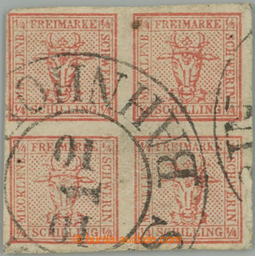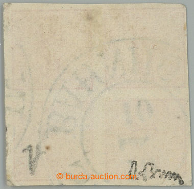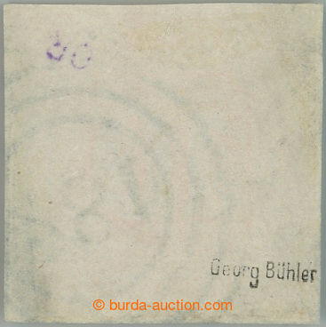 Philately. Mi.3, Numerals 4S carmine red, cancel. 11, perf 11¾; fine piece, exp. Brunner, c.v.. 600EUR (Image) (Image2)