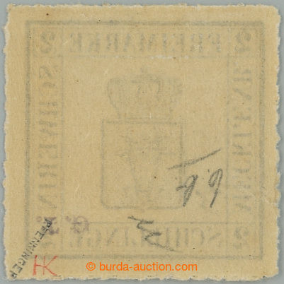 Philately. Mi.6b, Coat of arms 2Sh grey-blue, mint piece with large part original gum; exp. Pfenninger, c.v.. 180EUR (Image) (Image2)