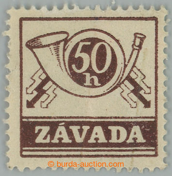 Philately. ZAVADA / Pof.8, Failure 50h brown S PŮVODNIM LEPEM; mint never hinged, prohnuti paper after office paperclip, small tearing in margin, after all exceedingly rare, c.v.. Pofis shows exceptional usage unused stamp. only