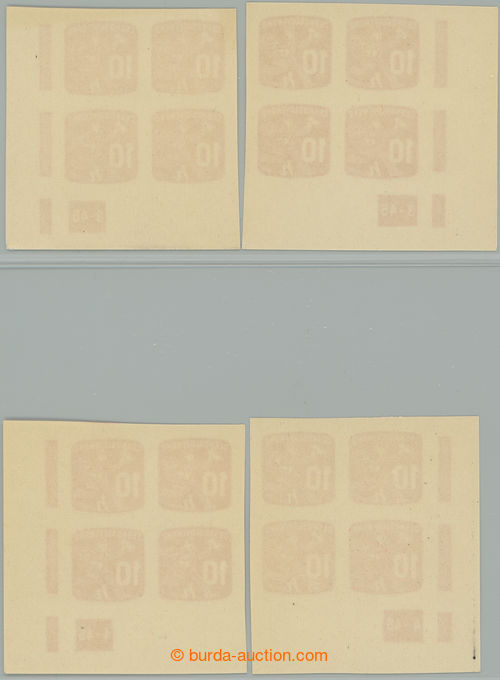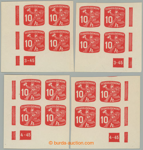 Philately. Pof.NV24 plate number, Newspaper stamps 10h, selection of R and L bottom corner blk-of-4 with plate number 3-45 and 4-45; very nice quality (Image) (Image2)