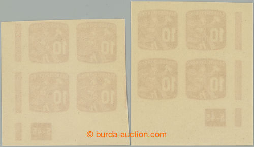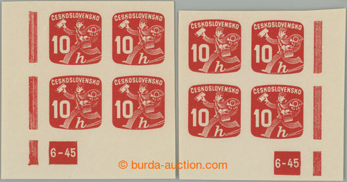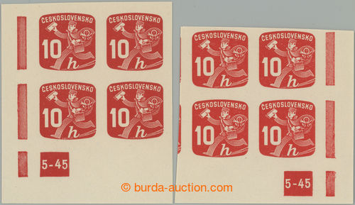 Philately. Pof.NV24 plate number, Newspaper stamps 10h, R and L lower corner blok of 4 with plate number 6-45; 1x small minor gum fault, otherwise mint never hinged (Image) (Image2)