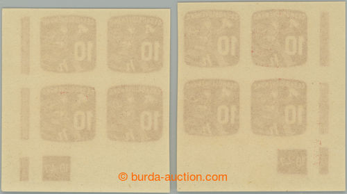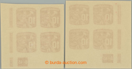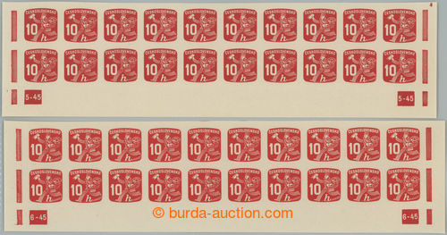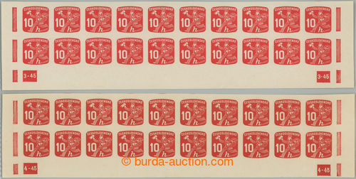 Philately. PASY / Pof.NV24 plate number, Newspaper stamps 10h, 2x lower bnd-of-20 with plate number 3-45 and 4-45; mint never hinged