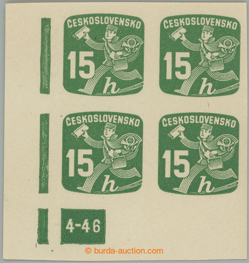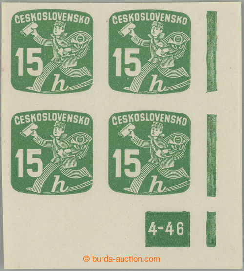Philately. Pof.NV25 plate number, Newspaper stamps 15h, LL corner blk-of-4 with plate number 4-46; mint never hinged, sought (Image) (Image2)