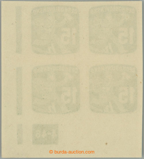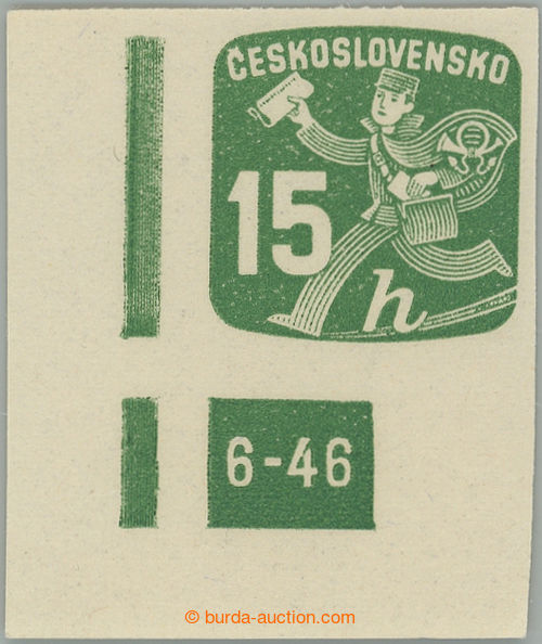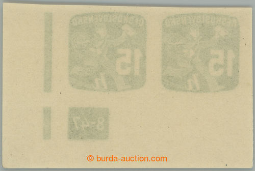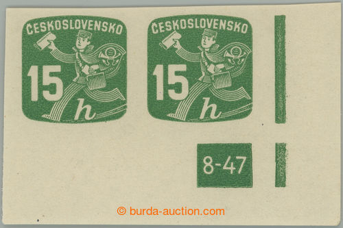Philately. Pof.NV25 plate number, Newspaper stamps 15h, right the bottom corner horizontal pair with nejvzacnejsim plate number complete issue 8-47!; mint never hinged, light print fingers in corner, quite rare, very rare! (Image) (Image2)