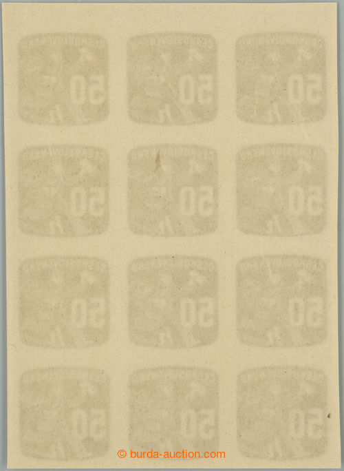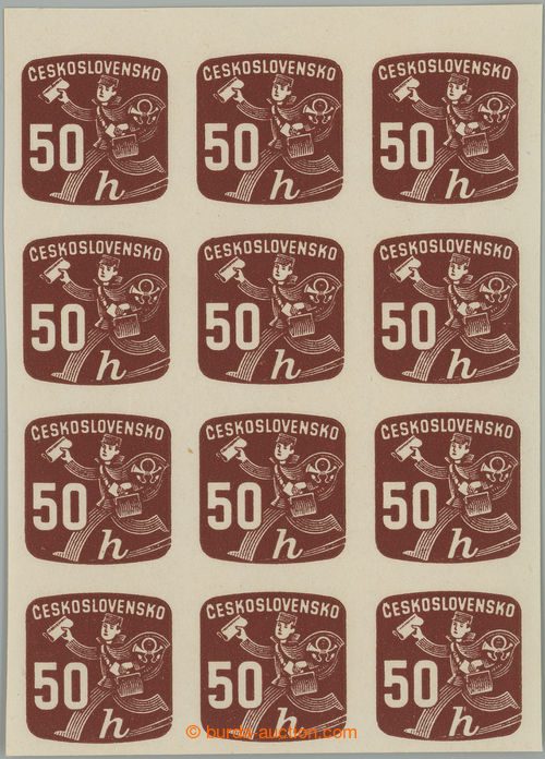 Philately. Pof.NV30 plate variety, Newspaper stamps 50h, blk-of-12 with upper margin and plate variety damaged numeral(s) 5 on pos. 36/1; mint never hinged (Image) (Image2)