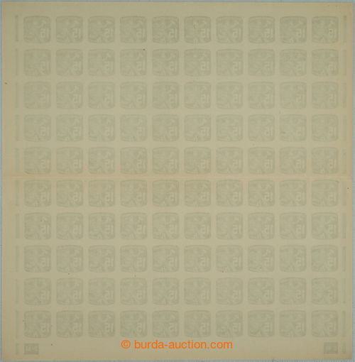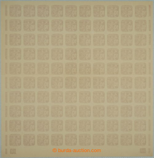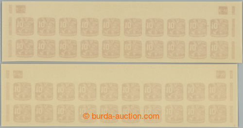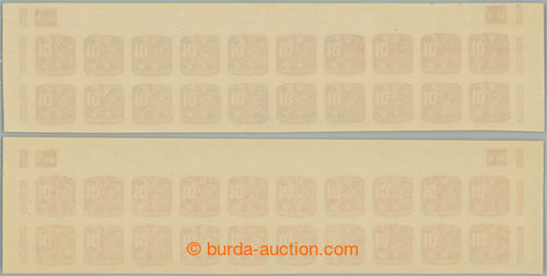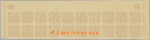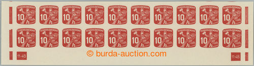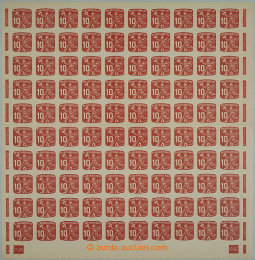 Philately. COUNTER SHEET / Pof.NV24 plate number, Newspaper stamp 10h, whole 100 pcs of counter sheet with 2x rare plate number 12-48; mint never hinged, only small production gum flaw, in the middle horiz. fold, c.v.. 10.000Kc++,