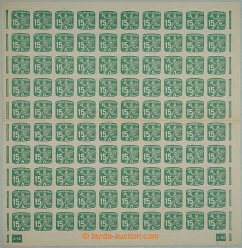 Philately. COUNTER SHEET / Pof.NV25 plate number, Newspaper stamps 15h, complete 100 pcs of counter sheet with plate number 3-46; mint never hinged, horiz. fold in the middle, overall fine, complete sheet with this plate number