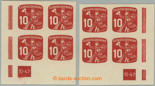 Philately. Pof.NV24 plate number, Newspaper stamps 10h, R and L lower corner blok of 4 with plate number 10-47; mint never hinged, rare usage