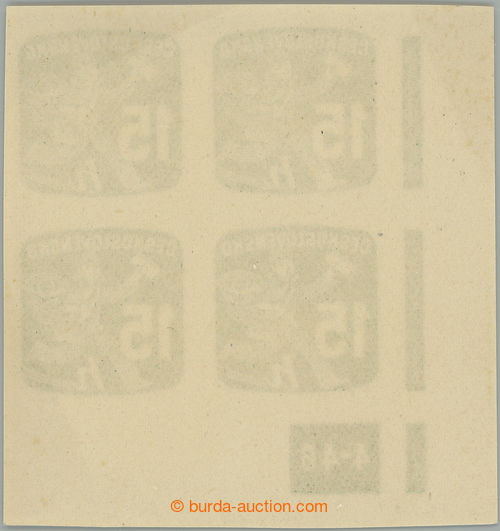 Philately. Pof.NV25 plate number, Newspaper stamps 15h, LR corner blk-of-4 with plate number 4-46; light print fingers, otherwise very nice quality, sought (Image) (Image2)