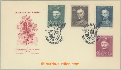 Philately. FDC 3B/48, Sokol festival - portraits, special postmark with different pozdnim date 8.VII.1948; very fine, interesting