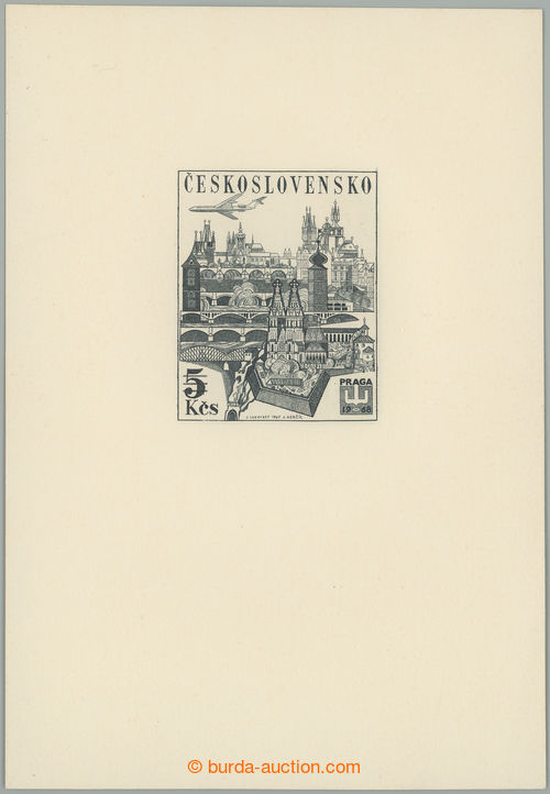 Philately. PT3, PRAGA 1968, black unnumbered (!), small format, size 108x157mm, rare occurrence; on reverse signs of storage, catalogue misvalues