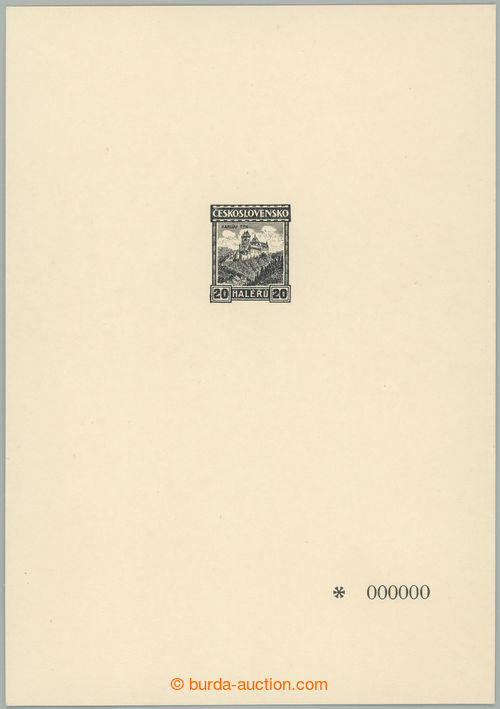 Philately. Pof.VT4a, Czechosl. stamp production, numbered, i.a. print original printing block stamp. 10h Hradcany in blue color, No. 000655; very fine (Image) (Image2)