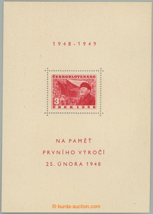 Philately. Pof.VT1a, ministerial print 1. Anniv of February 1948 with stamp. K. Gottwald 3Kcs, without signature, right size 106x150mm