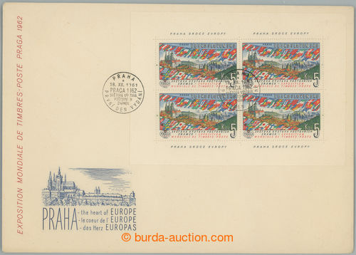Philately. unofficial FDC / unannounced envelope franked with. miniature sheet Pof.A1216, plate A, 2x special postmark PRAGUE/ 18.XII.1961/ FIRST DAY ISSUE/ PRAGA 1962, issued for members organizacniho committee exhibition,