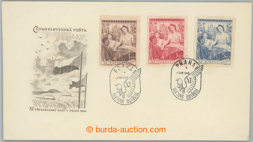 Philately. FDC 1B/48r, Sokol festival - allegory, with 2 print special postmark with defective date 3.VII.1948 (!); interesting and sought