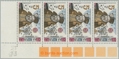 1918 nh imagePhilately. Pof.125 production flaw, Tycho Brahe 5CZK, right the bottom corner vertical strip of 4 with c.v.. production flaw 35/2 - incomplete-printing nozky appliances and 40/2 stain on cap (significant stage); mint never hinged (Image) (Image2)