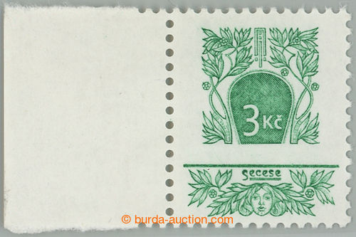 1916 nh imagePhilately. Pof.90 production flaw, Art Nouveau 3CZK, L marginal stmp with production flaw - quite omitted print blue color - missing name state; mint never hinged (Image) (Image2)