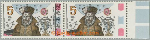 1917 nh imagePhilately. Pof.125 production flaw, Tycho Brahe 5CZK, marginal horizontal pair, right stamp. with incomplete printing black color R - missing name state and text Tycho Brahe; light print finger, quite rare (Image) (Image2)
