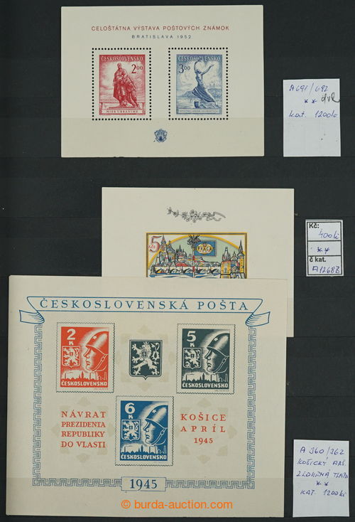 1908 og imagePhilately. [COLLECTIONS] MINIATURE SHEETS + PB / selection of miniature sheets and PB, i.a. contains Kosice MS with plate variety broken paw, Bratislava miniature sheet, Columbus, overprint Airmail in blocks of four with coupons, 2x letter with revolutionary overprints Mnichovice and other; various quality, in 8-sheet stockbook (Image) (Image2) (Image3) (Image4) (Image5) (Image6) (Image7) (Image8) (Image9) (Image10) (Image11) (Image12) (Image13) (Image14) (Image15) (Image16) (Image17)