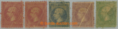 Philately. selection of 5 PLATE PROOF for Mi.18, Napoleon / Empire Francais, from cliche 1C so-called. Loewenber PLATE PROOF; minor faults, interesting (Image) (Image2)