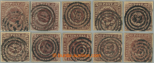 Philately. Mi.1I, 1II, Coat of arms FIRE R.B.S, selelction of 10 stamps, with nice postmarks, various colors, papers and prints; rare set!