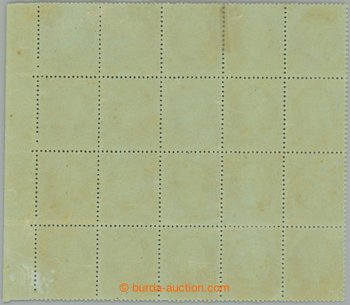 Philately. Yv.19, Napoleon III. EMPIRE FRANC 1C green olive, perforated, marginal mint block of 20; very fine, hinges only on upper line of stamps, c.v.. for * as 4x block of four and 4 single stamps 4.600EUR++, scarce multiple (Image) (Image2)