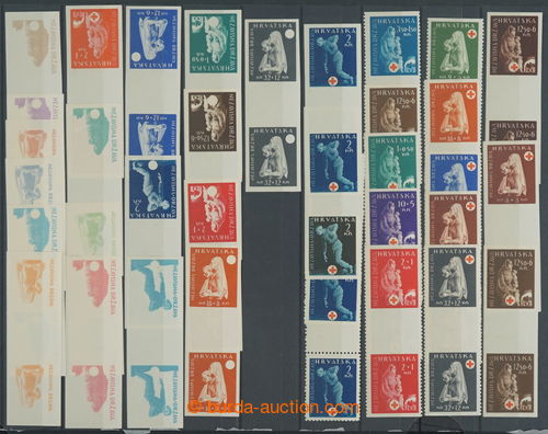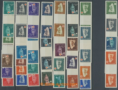 Philately. [COLLECTIONS] Mi.118-127, Red Cross 1K-32K, total of 180 pcs of mostly imperforated stamps and phase prints, all in gutters; very fine set, contains all values, cat. min. 1.800EUR (Image) (Image2)