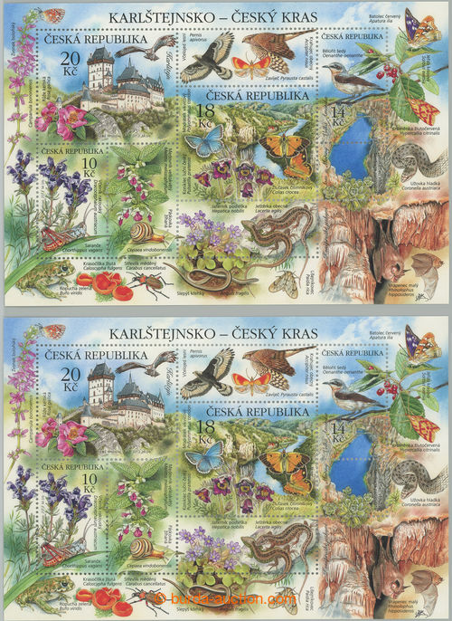 2040 nh imagePhilately. Pof.A773/776 production flaw, miniature sheet Karlstejnsko, comp. 2 pcs of miniature sheets, 1x with production flaw - blue line after/behind word Ropucha + 1x without this production flaw; mint never hinged (Image) (Image2) (All Images)
