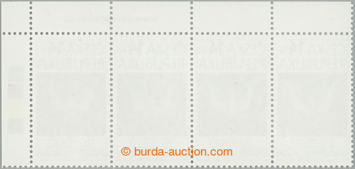 2030 nh imagePhilately. Pof.711 VV, 150. anniv of foundation Sokol 14CZK, L bnd-of-20, surplus print (nezdvojene perf. holes in margins), catalogue production flaw 3/2, 42/2 and 44/2, in addition production flaw 24/2 - yellow stain by L ribbon L from L leg falcon; very sought also as printing (Image) (Image2) (All Images)