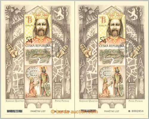 2147 ng imagePhilately. PAL10 I. + II., Charles IV. with mounted stamp. Pof.885 with both coupons, both variants as with printing error Karolus Quatrus, so with already right text Karolus Quartus; superb, rare, date issue neoznameno, rozprodano during several days, part I. printing after/around unveiling chyby in text skartovana (Image) (Image2) (All Images)