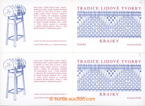 2141 nh imagePhilately. Pof.SL352, Krajky 6,40CZK, selection of two booklets (field A and B), both paste-in on/for L (place on R side) booklet and folded picture (no gum) k sobe (bend impossible (to) uspesne padelat); less then desetina printing, very rare, catalogue shows (Image) (Image2) (All Images)