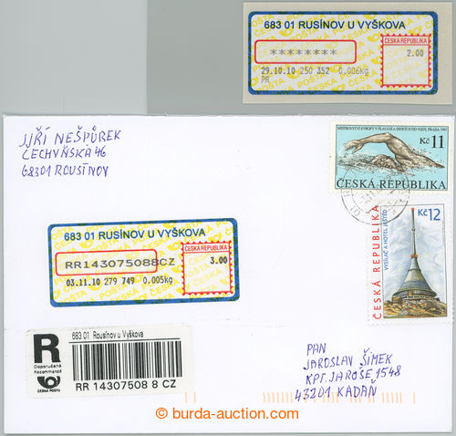 2152 imagePhilately. CHYBOTISK / value label 2A, 68301 RUSINOV U VYSKOVA, Reg letter with Pof.152, 552 and value label APOST 3CZK, right franking, CDS ROUSINOV U VYSKOVA 3.11.10, in addition also with 1x value label RUSINOV U VYSKOVA with value 2CZK; good condition, sought! (Image) (Image2) (All Images)
