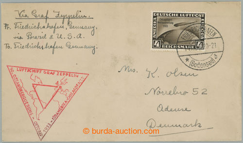 201 imagePhilately. CHICAGOFAHRT 1933 / letter with 4RM, Sie. 238Cbb, flight Friedrichshafen-Friedrichshafen, red cancel. 50. Ozeanuberquerung etc..; c.v.. Sieger 800EUR (Image) (Image2) (All Images)